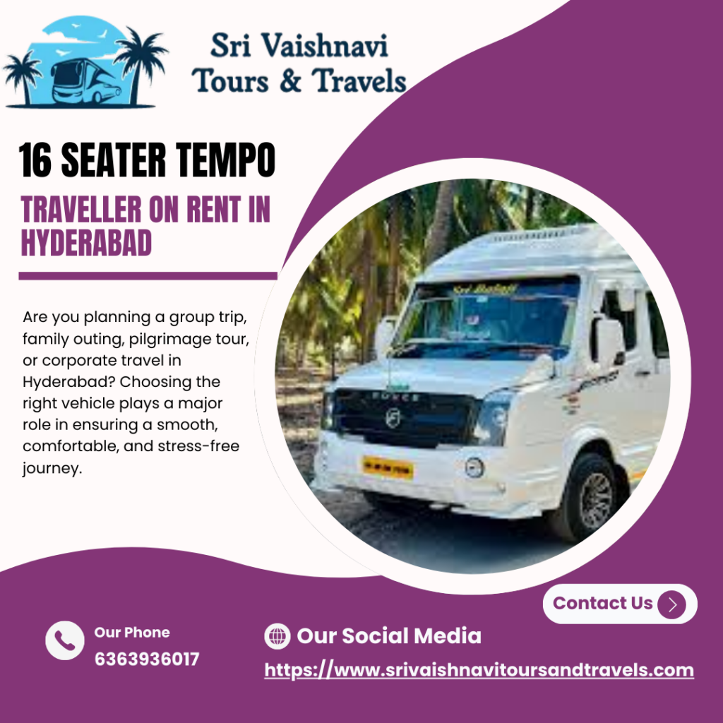 Are you planning a group trip, family outing, pilgrimage tour, or corporate travel in Hyderabad? Choosing the right vehicle plays a major role in ensuring a smooth, comfortable, and stress-free journey. At Sri Vaishnavi Tours and Travels, we provide the best 16 Seater Tempo Traveller on Rent in Hyderabad, offering luxury, safety, and convenience at affordable prices. Whether your travel needs are local or outstation, our spacious and well-maintained Tempo Travellers are the perfect choice for groups.