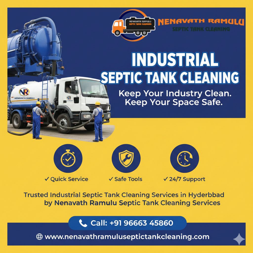 If you are looking for Industrial Septic Tank Cleaning Services in Hyderabad, the best choice for your business is Nenavath Ramulu Septic Tank Cleaning Services. They offer fast, safe, and trusted cleaning services for all types of industries.