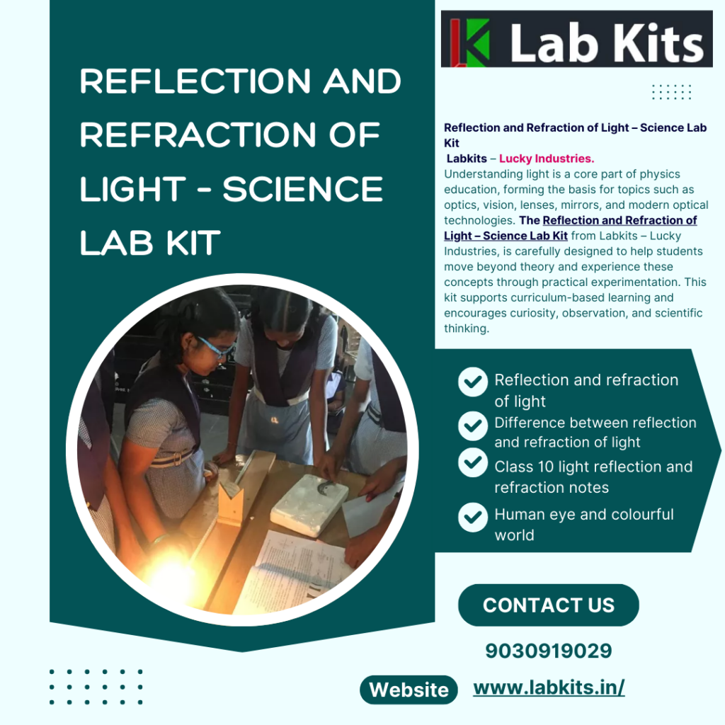 Understanding light is a core part of physics education, forming the basis for topics such as optics, vision, lenses, mirrors, and modern optical technologies. The Reflection and Refraction of Light – Science Lab Kit from Labkits – Lucky Industries, is carefully designed to help students move beyond theory and experience these concepts through practical experimentation. This kit supports curriculum-based learning and encourages curiosity, observation, and scientific thinking.